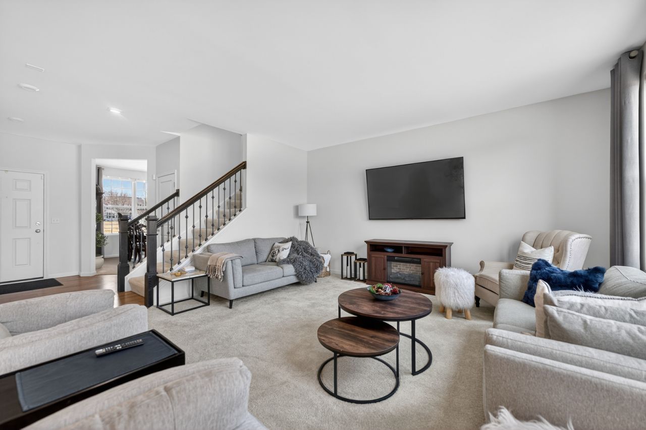 Welcome to this brand-new, turn-key home in highly sought-after Walnut Glen offering the perfect blend of modern design, thoughtful functionality, and prime location. Situated on a premium, fully fenced, professionally landscaped lot, this home shows like the model and is truly move-in ready. The views on the front and backyard are exceptional! Inside, you'll find 3 spacious bedrooms plus a huge loft that can easily be converted into a 4th bedroom, 2.5 baths, a versatile flex room, and a built-in office nook ideal for remote work or study space. Incredible storage solutions are thoughtfully integrated throughout the home, blending seamlessly with the design while maximizing organization and efficiency. The chef's kitchen is the centerpiece of the home, featuring a massive granite center island, beautiful granite countertops, a walking pantry, a 5-burner gas range, and stainless steel KitchenAid appliances. With abundant cabinetry and prep space, this kitchen is perfect for entertaining and everyday living alike. The stunning great room is filled with natural light and enhanced by electric blinds for added convenience and modern comfort allowing you to control privacy and ambiance at the touch of a button. Upstairs, the primary en-suite offers a private retreat complete with a sunken soaking tub, a walk in closet, separate shower, private water closet, and spacious layout designed for comfort. The additional bedrooms are generously sized and complemented by the expansive loft area. The full unfinished basement provides endless potential and is ready for your finishing touches whether you envision a recreation room, home gym, media space, or additional living area. Located just minutes from shopping, dining, parks, schools, and major roadways, this home offers both convenience and lifestyle in one exceptional package.